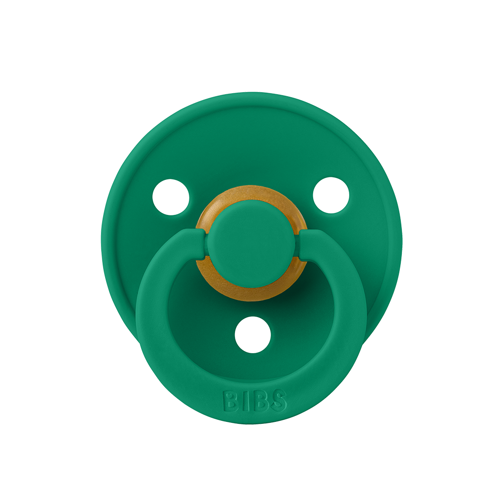 Our Colour pacifier is the original BIBS pacifier and has been on the market for over 40 years. It has the signature round BIBS shield with three vent holes and round BIBS engraved handle ring.