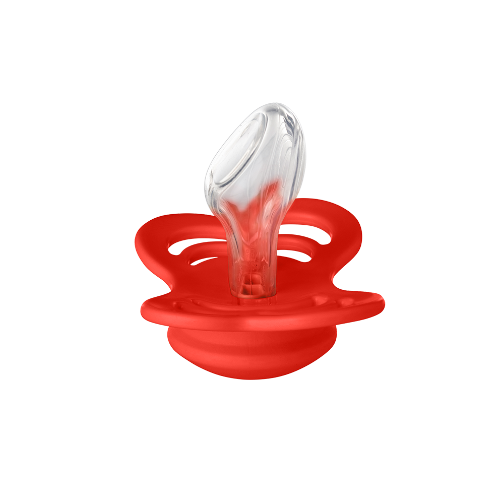 Couture comes with an anatomical nipple - also called orthodontic nipple - which is round at the top for a natural fit to the baby's palate with an angled tip for easy placement of the tongue.