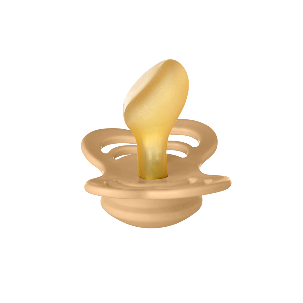 Couture comes with an anatomical nipple - also called orthodontic nipple - which is round at the top for a natural fit to the baby's palate with an angled tip for easy placement of the tongue.