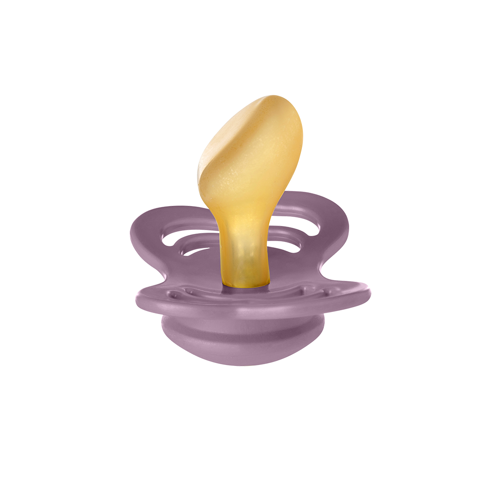 The curved top promotes a tongue placement and sucking technique where the sides of the tongue cup around the nipple, like it, does during breastfeeding. The angled tip means that the baby does not need to suck as hard for the pacifier to flatten inside the mouth.
