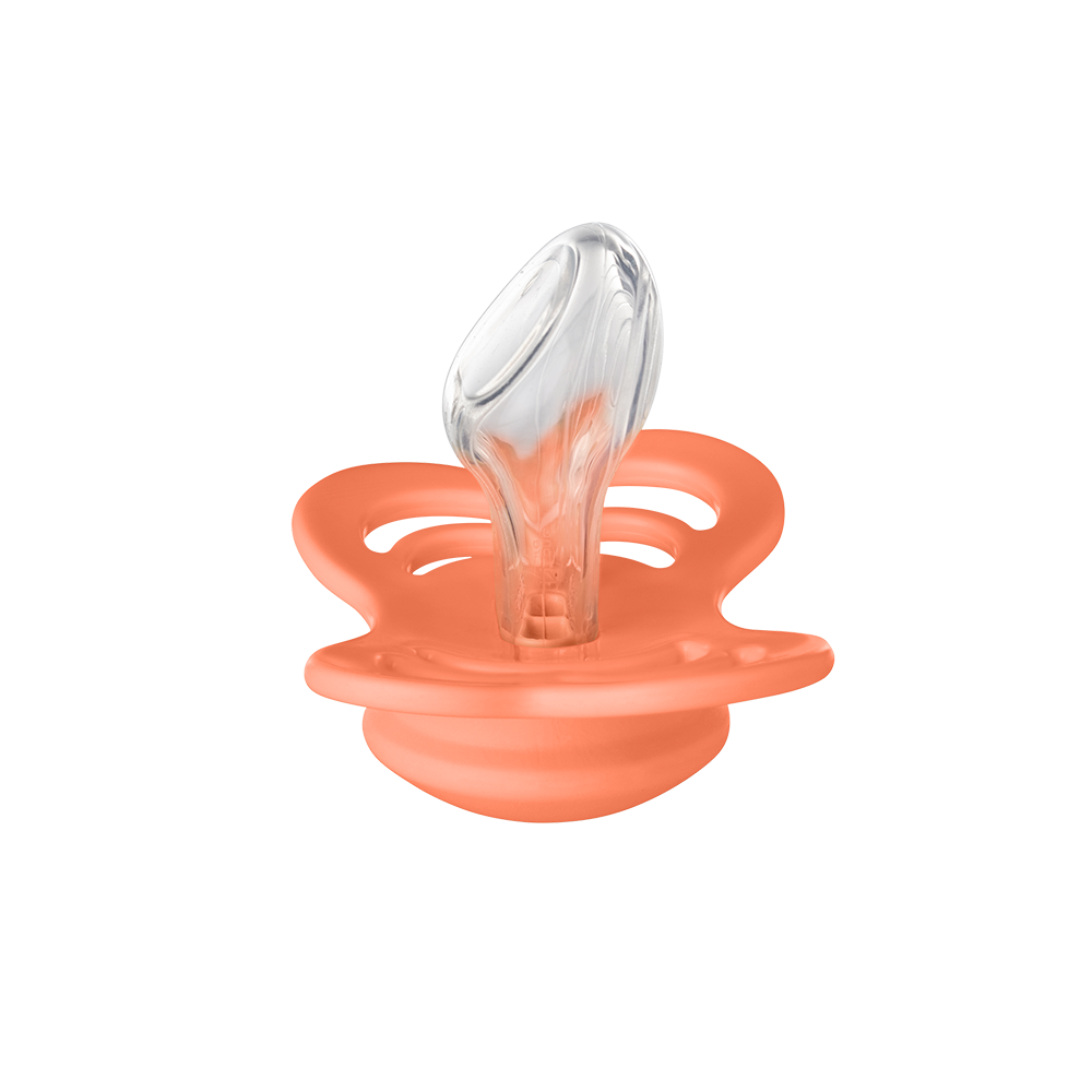 Couture comes with an anatomical nipple - also called orthodontic nipple - which is round at the top for a natural fit to the baby's palate with an angled tip for easy placement of the tongue.