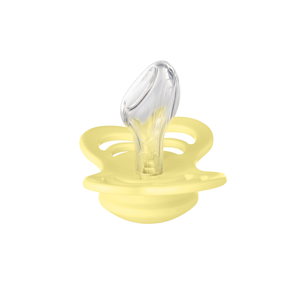 Couture comes with an anatomical nipple - also called orthodontic nipple - which is round at the top for a natural fit to the baby's palate with an angled tip for easy placement of the tongue.
