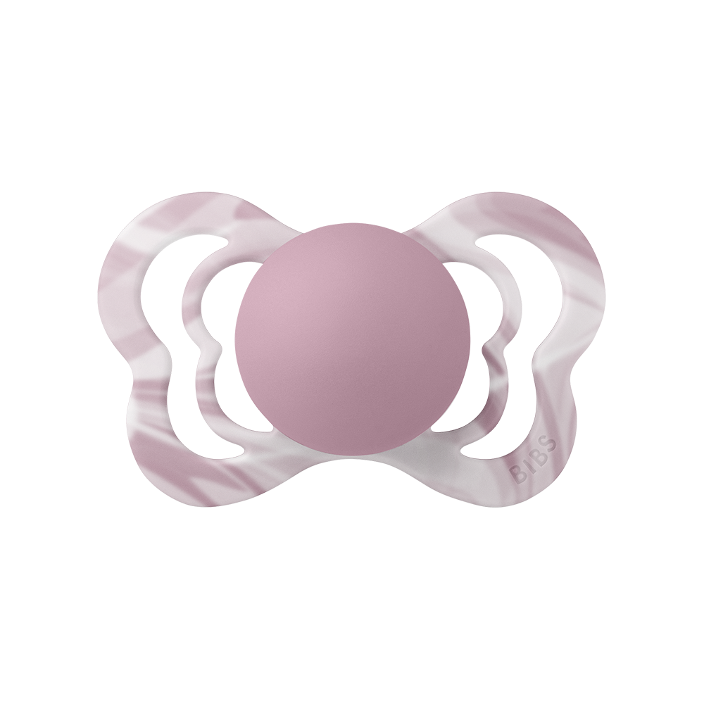 The lightweight shield is carefully designed with large holes on each side to ensure minimum contact with the sensitive and delicate skin around the baby's mouth, which means less chance of moisture build-up from saliva that can cause rashes and sore spots. Because the nipple is not symmetrical the pacifier must be placed the right way in the baby's mouth. To ensure this, the shield has been specially designed to resemble a butterfly, so it is easy to see which way the pacifier should turn.