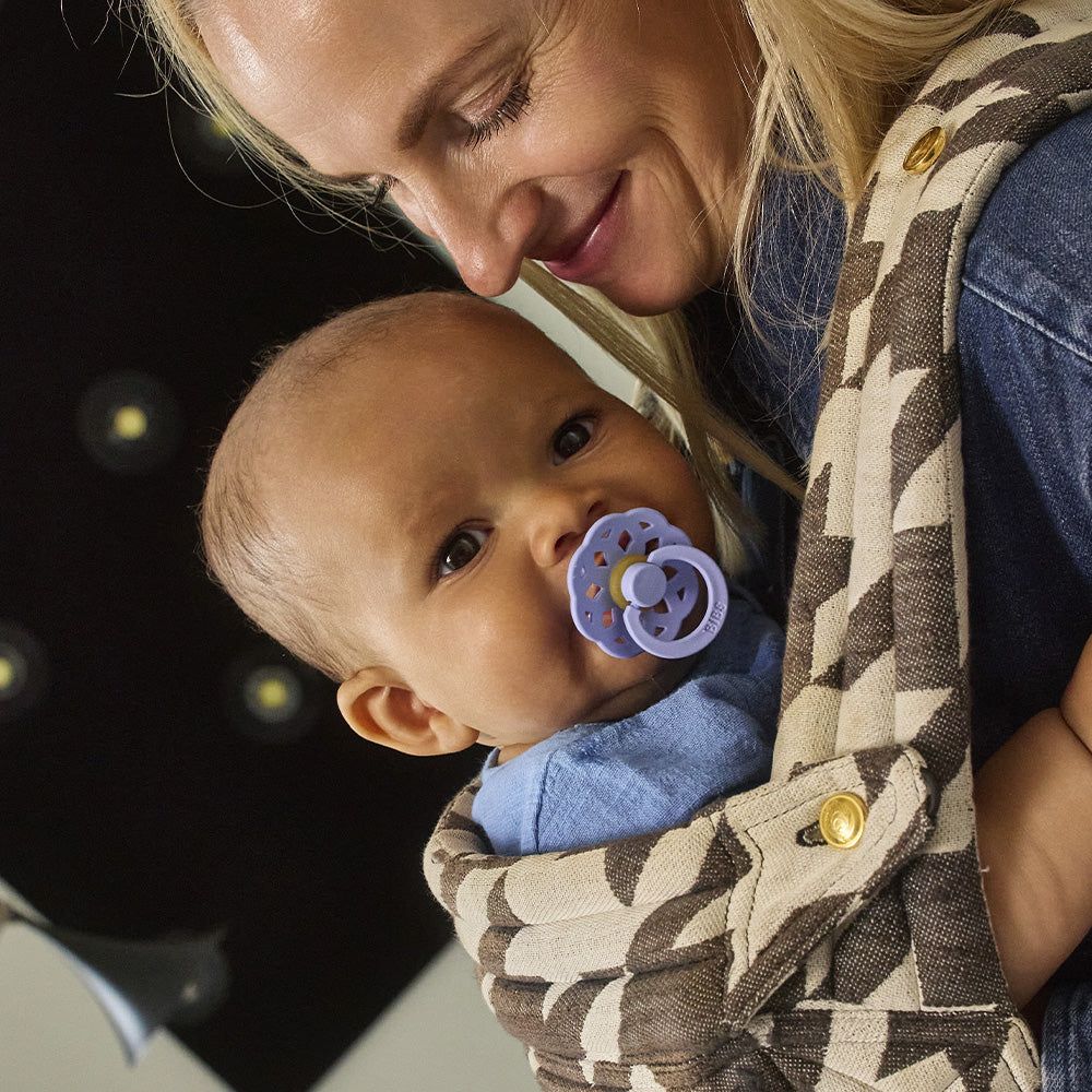 Our Boheme pacifier is inspired by the modern bohemian style. With its natural elements and organic silhouette Boheme appears in a fresh, creative, and aesthetic design.
