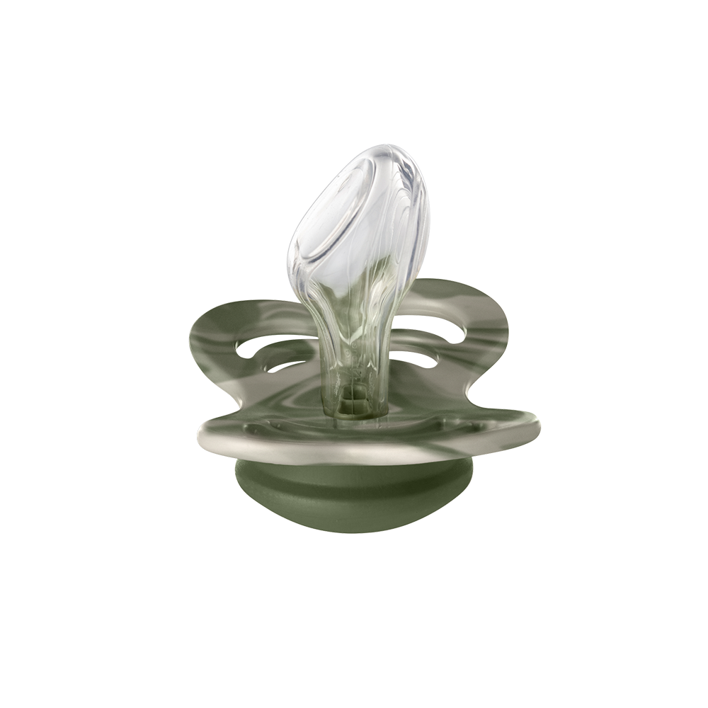 Because the nipple is not symmetrical the pacifier must be placed the right way in the baby's mouth. To ensure this, the shield has been specially designed to resemble a butterfly, so it is easy to see which way the pacifier should turn.